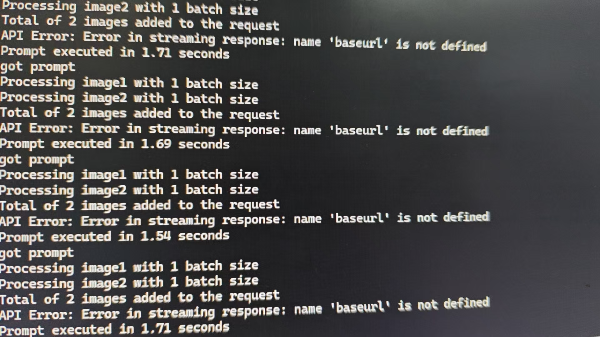 API Error: Error in streaming response: name:'baseurl'is not defined